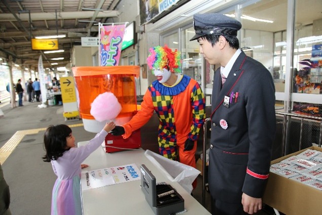 トキ鉄名物トキ鉄カフェやピエロの綿あめも出店し、ちびっこが大喜びで買い求める姿が印象的でした。