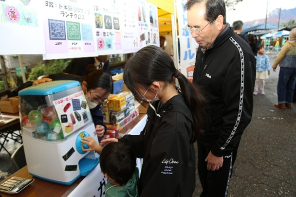 この日は地元の飲食店などが出店し、朝からステージ前でお食事を楽しむ人が見られました。今年からトキ鉄も共催させていただくことになったこともあり、トキ鉄のブースも出店し、空くじなしのガチャやスマートボールのゲームにチャレンジする子供たちでにぎわいました。
