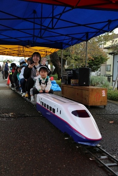 ミニ新幹線乗車体験コーナーは小さなお子様連れの皆さまに好評で、順番を待つ行列ができていました。