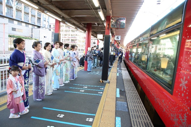 復路の出発時も、友禅大使の皆様がホームでお見送りをしてくださいました。