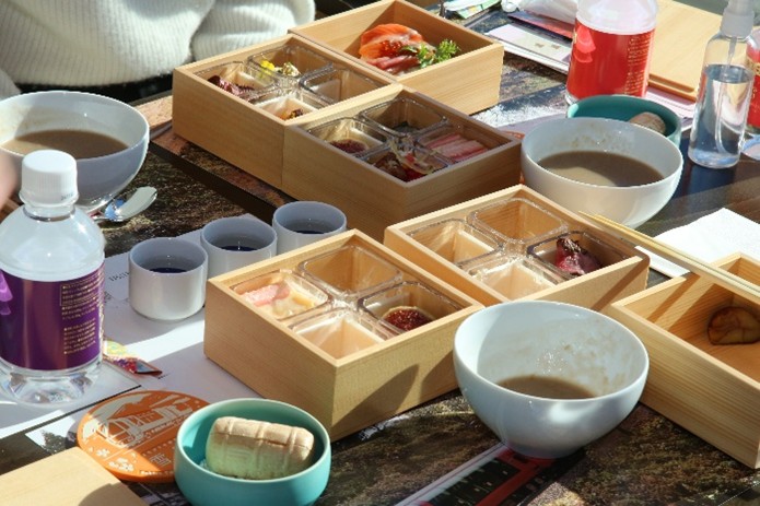今回の特別列車の車内では、午前便は、新潟県上越市で飲食店 YAGAIYA を経営する料理人「信田 紘基」氏によるお食事を、午後便では、石川県金沢市の老舗料亭「大友楼」様によるお食事をご提供しました。