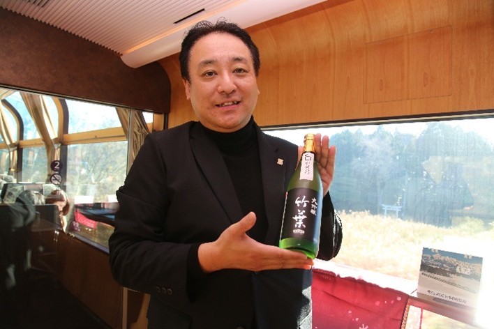 また、上越市三和区在住でソムリエの資格を有する宮崎 文徳さんが、ご乗車になり、車内で提供した新潟・富山・石川のお酒を解説してくださいました。