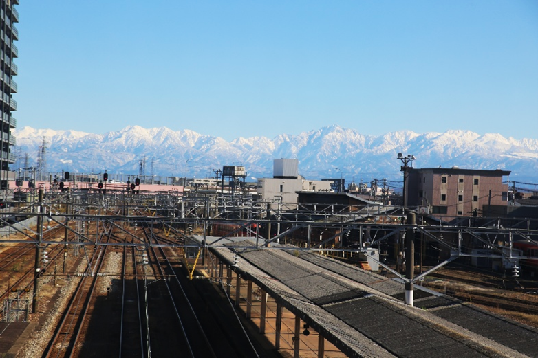 この日は朝から快晴となり澄み切った青空のもと冠雪した立山連峰が一望でき、ご乗車の皆さまも感動されていました。