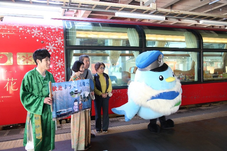今回も万葉の衣装に身を包んだ皆様と、あいの風とやま鉄道のキャラクター