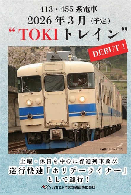 「TOKIトレイン」という愛称の由来は、かつて北陸本線の普通列車で使用された愛称「タウントレイン」にちなんだもので、えちごトキめき鉄道の「トキ」を入れています。