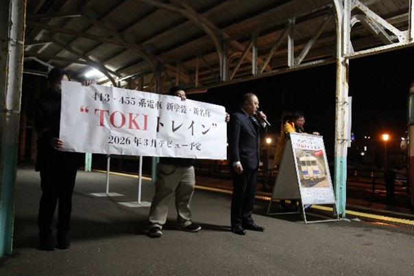 イベントでは初めに、弊社の平井隆志社長が、今年3月以降の列車の愛称を「TOKIトレイン」とすると発表しました。