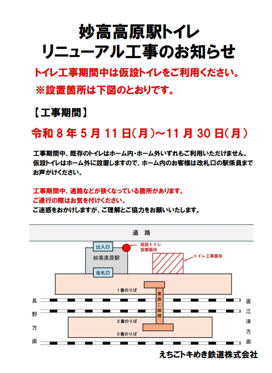妙高高原駅トイレ リニューアル工事のお知らせ