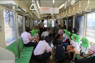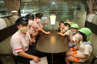 その後、雪月花を見学しました。赤い華やかな車両に園児たちは感激し、お友達や運転士さんと一緒に座ったりしながら交流を深めていらっしゃいました。