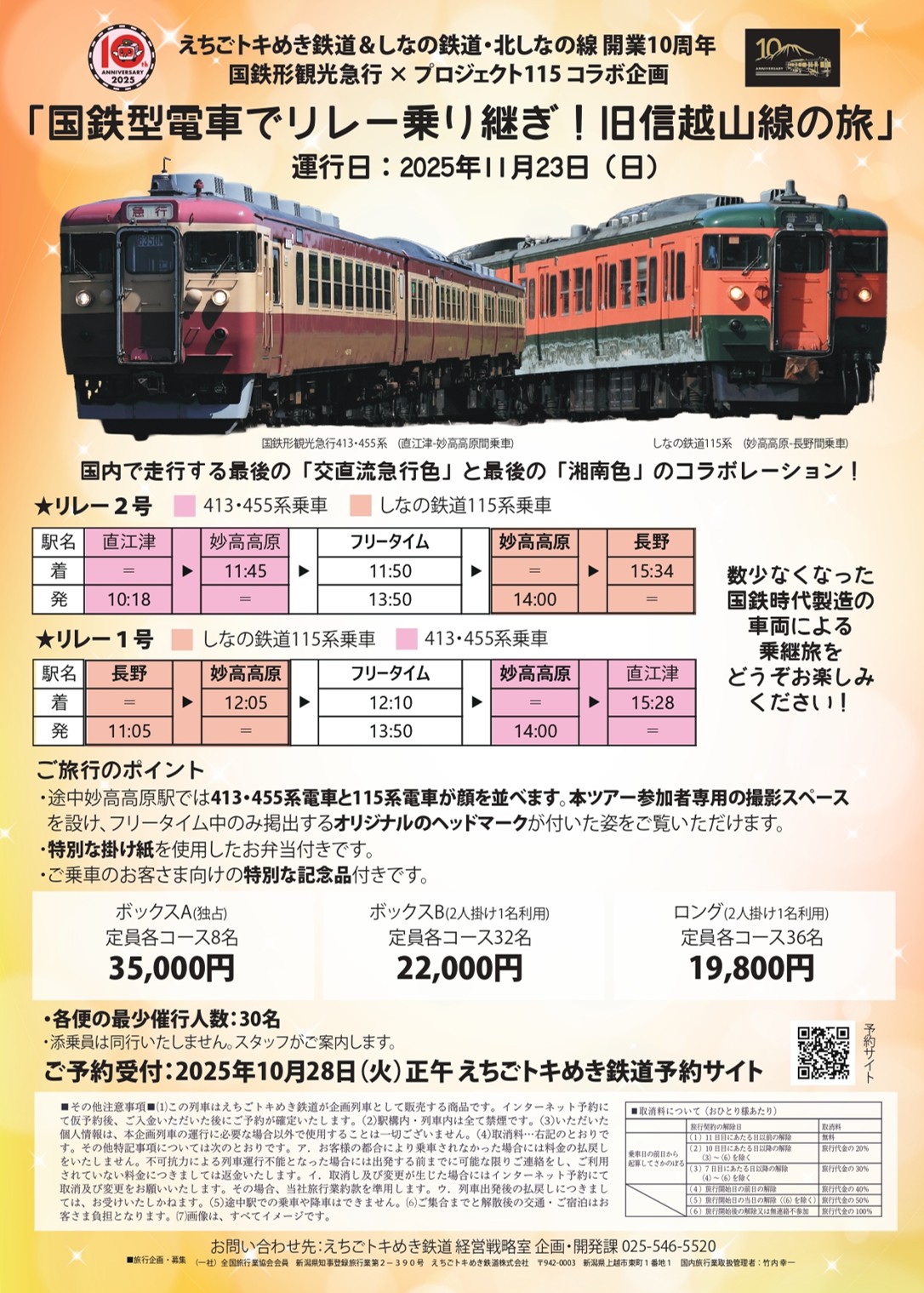 開業10周年記念企画「国鉄型電車でリレー乗り継ぎ!旧信越山線の旅」の開催について