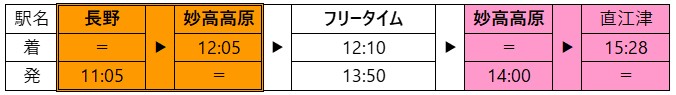 ★リレー1号(長野発~妙高高原のりかえ直江津駅まで乗車するコース)