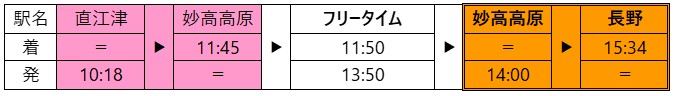 ★リレー2号(直江津発~妙高高原のりかえ長野駅まで乗車するコース)