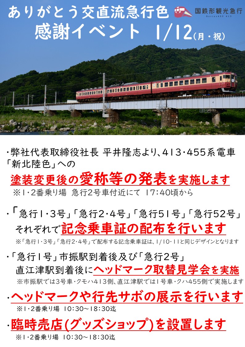 1月12日(月・祝)「ありがとう交直流急行色」感謝イベントの開催について