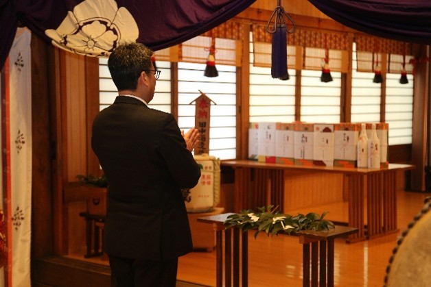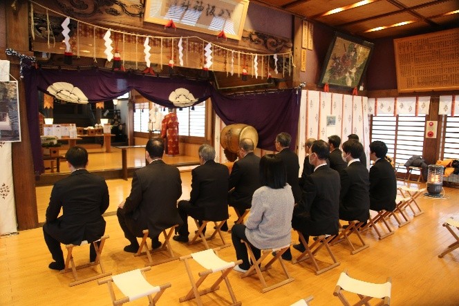 安全祈願祭には、平井 隆志代表取締役社長、藤山 育郎代表取締役専務をはじめ、古川運輸部長(安全統括官)、佐藤設備部長、竹内営業部長や花水安全推進室長など安全運行に関する関係者が臨席し、今年1年の安寧と安全や事業の繁栄などを願いました。