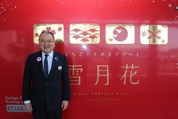 本年は、「えちごトキめきリゾート雪月花」が運行開始してから10周年を迎えます。昨年は、軽井沢駅や金沢駅への直通運転、沿線三市の小学生向けの企画列車、車内でのバイオリンとギターの生演奏の実施など、今までにない企画を実施させていただきました。本年も、引き続き皆様に喜んでいただける企画を実現して参ります。