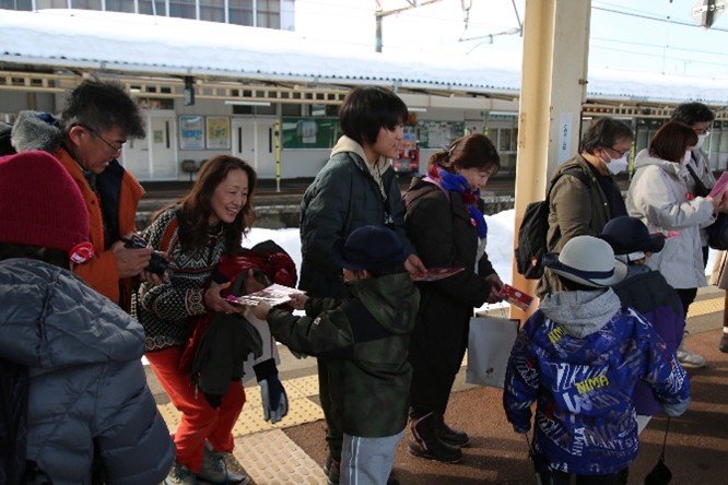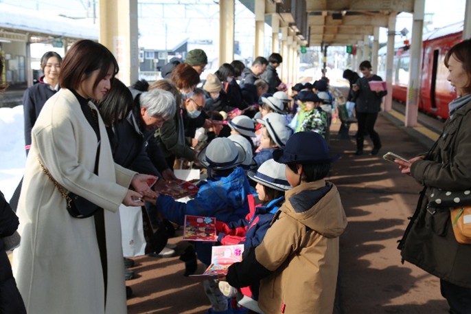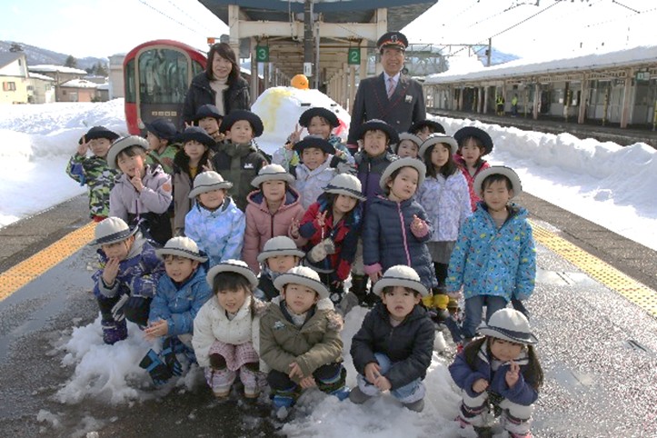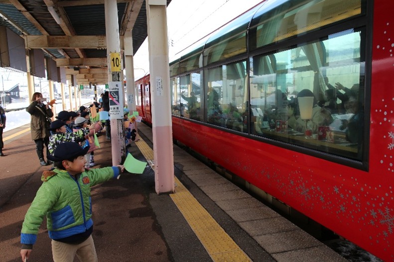 雪月花冬期特別運行 雪国コースで、ときわこども園の園児がおもてなし!!