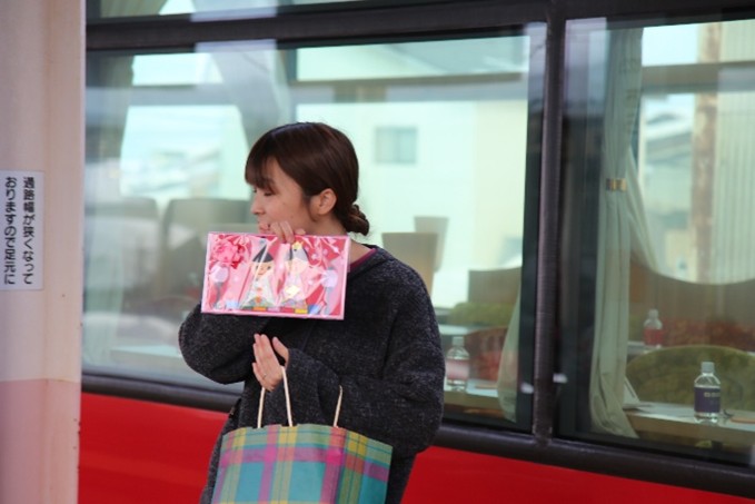 出発前に、園児たちが口々に「また来てねー」と呼びかけ、手作りの旗を振ると、お客様の中にはうれし涙を浮かべる人も見られました。