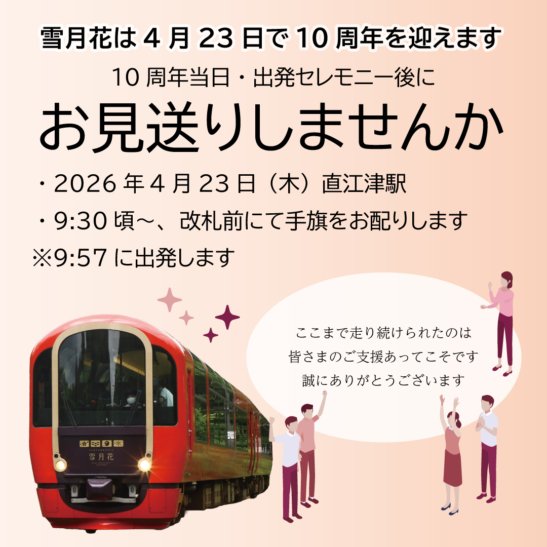 えちごトキめきリゾート雪月花は、4/23におかげさまで運行開始10周年を迎えます。